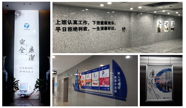 積極開展廉政氛圍布設(shè),在集團(tuán)公司辦公大樓、建設(shè)項(xiàng)目部、運(yùn)營(yíng)車站等設(shè)立廉政文化作品和舉報(bào)展板等240余幅,多場(chǎng)景、多形式、多角度營(yíng)造廉政文化氛圍。
